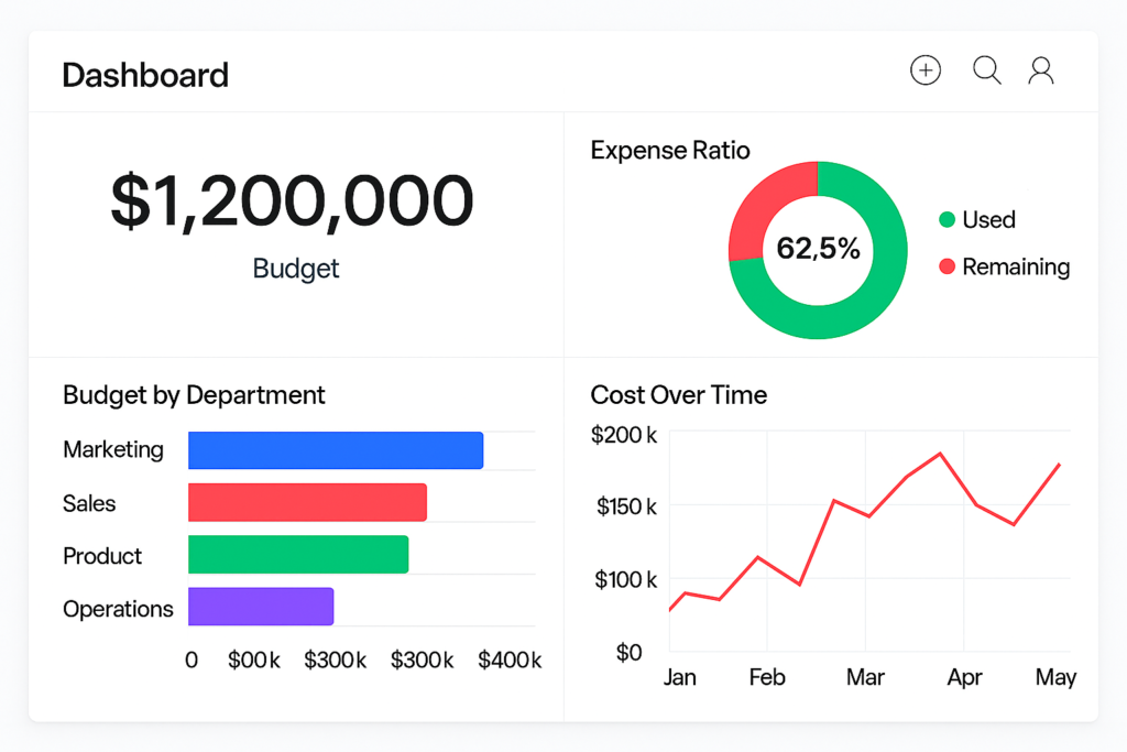 Daarnaast bieden we uitgebreide inzichten voor finance, management en operations. Met op maat gemaakte dashboards krijg je helder zicht op budgetten, bestedingen, voortgang, workload, capaciteitsplanning en KPI’s. Hierdoor kun je sneller en beter sturen, risico’s eerder herkennen en beslissingen nemen op basis van actuele data in plaats van losse spreadsheets.