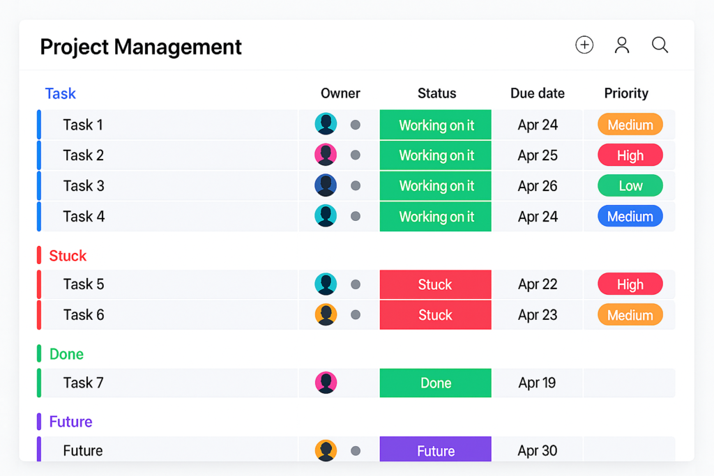 Bij BrightOps zorgen we ervoor dat organisaties grip krijgen op hun projecten, teams en resultaten — allemaal vanuit één overzichtelijk platform: monday.com. We bouwen volledig op maat ingerichte projectboards waarin elke taak, deadline, fase en afhankelijkheid helder zichtbaar is. Van operationele projecten tot complexe, multidisciplinaire trajecten: alles wordt gestructureerd, meetbaar en inzichtelijk gemaakt. Teams werken samen in één omgeving, zien direct wat de status is en ervaren meer rust en duidelijkheid in hun werkdag.